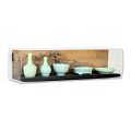 文物朝代:北宋 汝窯(1101 A.D.-1150 A.D.) 文物尺寸:口徑:18.4 cm 總高:3.8 cm 底徑:12.7 cm 文物形式:瓷 文物描述:盤斂圓口、弧形淺壁,盤面寬平;圈足外伸,因裹足的釉汁積垂而顯得足緣捲起。全器滿施天青釉色,釉澤內斂,色腴潤;積釉處微偏綠色調,薄釉處胎色透映若粉紅調。釉面滿佈魚子狀細紋片,色淺淡。足圈外緣有小片縮釉,露香灰色細膩的胎。周壁胎薄,底及足略厚。器底五個細小支釘痕,呈五角形排列。